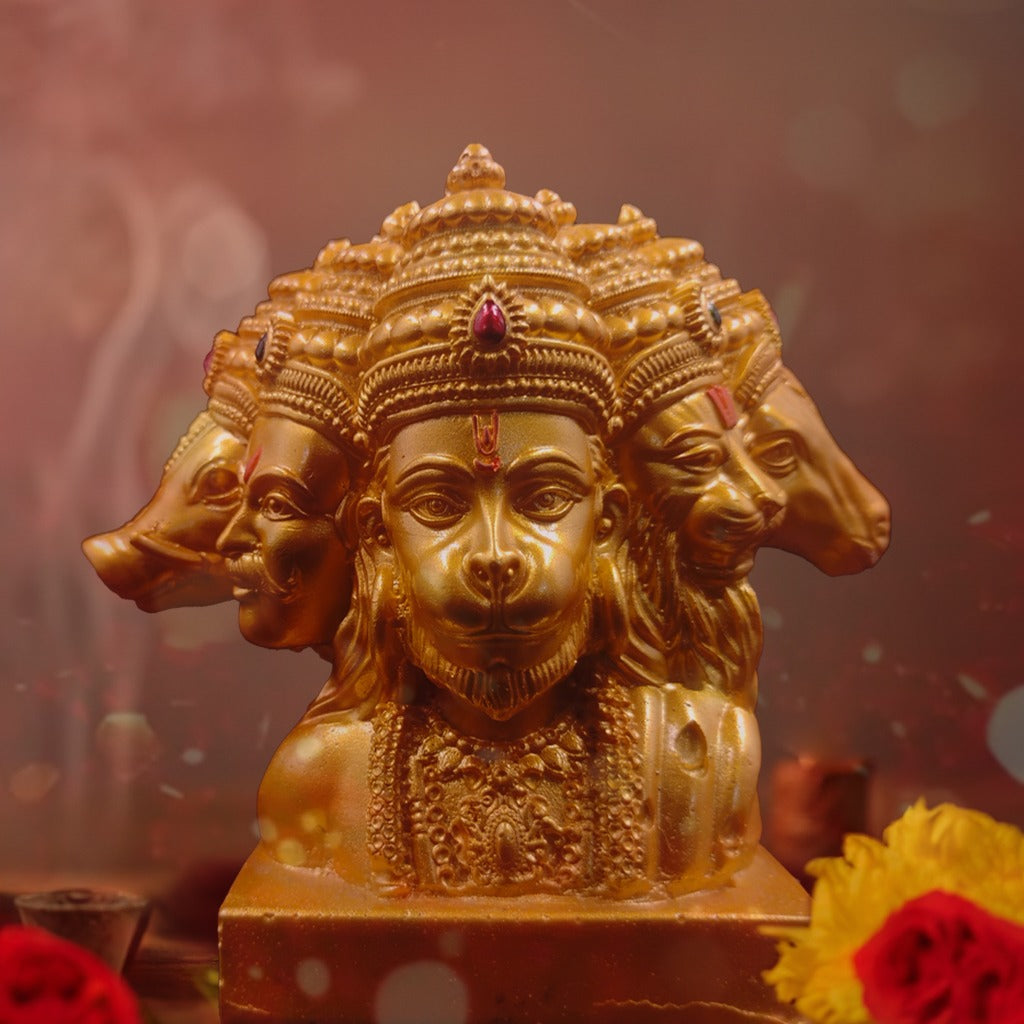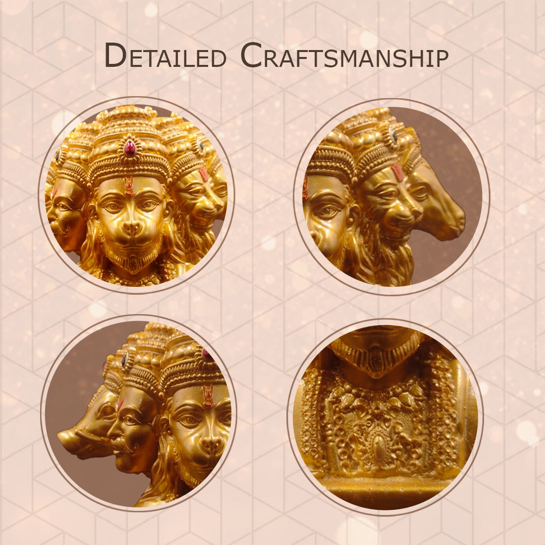 Kanha kothi Panchmukhi Hanuman Idol (Five Faced) | Golden Finish Resin/Polyresin Murti for Home Temple & Office